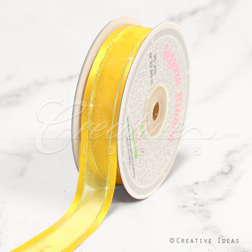 7/8" Organza With Satin And Gold Edge Ribbon - 25 Yards (Canary)