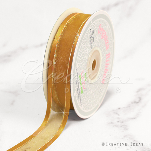 7/8" Organza With Satin And Gold Edge Ribbon - 25 Yards (Antique Gold)