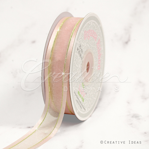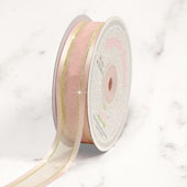 7/8" Organza With Satin And Gold Edge Ribbon - 25 Yards (Blush)