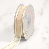 7/8" Organza With Satin And Gold Edge Ribbon - 25 Yards (Light Gold)