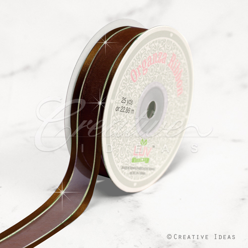 7/8" Organza With Satin And Gold Edge Ribbon - 25 Yards (Brown)
