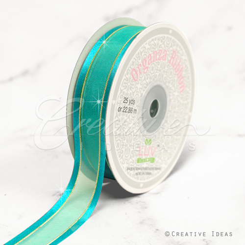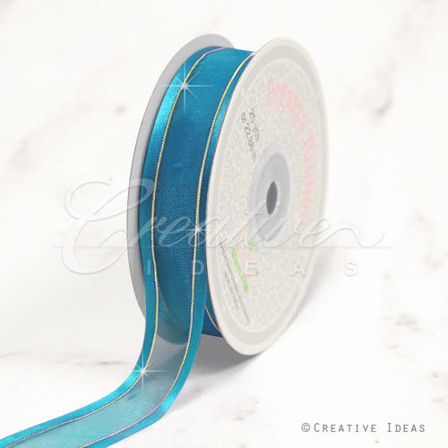 7/8" Organza With Satin And Gold Edge Ribbon - 25 Yards (Turquoise)