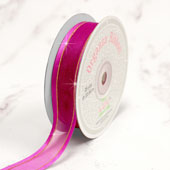 7/8" Organza With Satin And Gold Edge Ribbon - 25 Yards (Fuchsia)