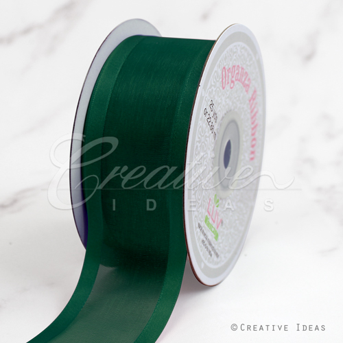 1 1/2" Organza With Satin Edge Ribbon - 25 Yards (Emerald Green)