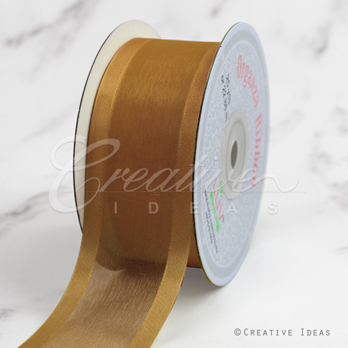 1 1/2" Organza With Satin Edge Ribbon - 25 Yards (Antique Gold)