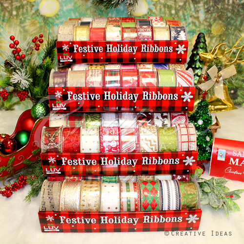 2 1/2" X'mas Ribbons Astd-10 Yds (W/ Tray) (Assorted)