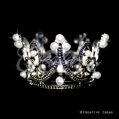 2 5/8" PEARL & RHINESTONE VINTAGE TIARA-PC (Silver)