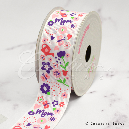 1 1/2" GROSGRAIN MOM GARDEN RIBBON-10 YDS (White)