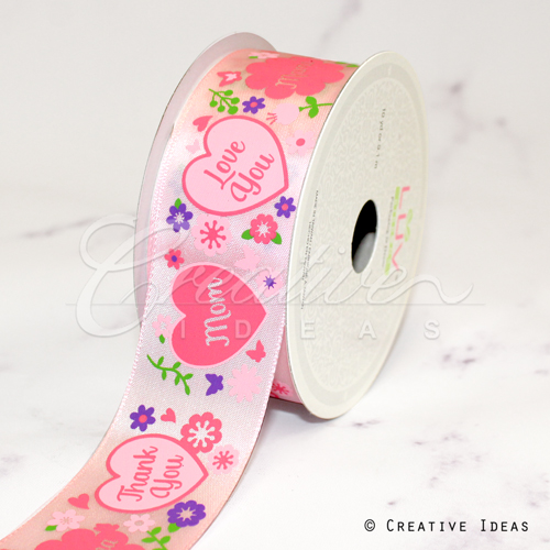 1 1/2" SATIN LOVE YOU MOM RIBBON-10 YDS (Pink)