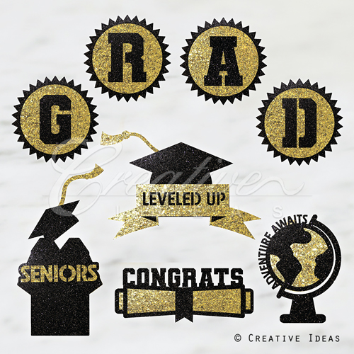 8 Pcs Congrats Grad Decal-Set (Black/Gold)