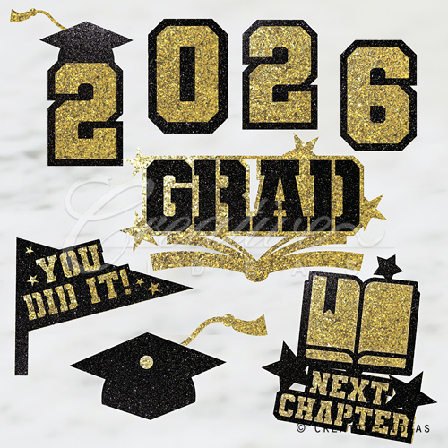 8 Pcs Next Chapter Grad Decal-Set (Black/Gold)