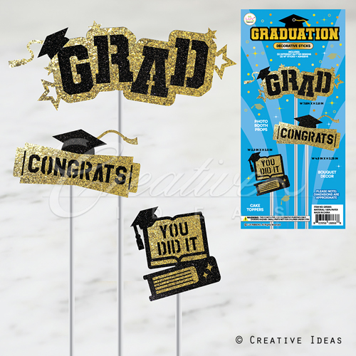 3 Pcs You Did It Grad Stick Props-Set (Black/Gold)