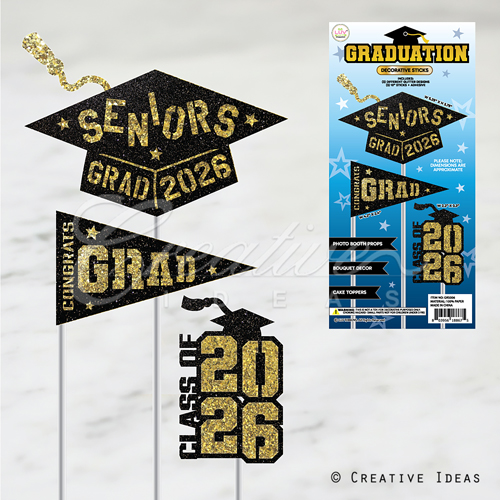 3 Pcs Senior Grad Stick Props-Set (Black/Gold)