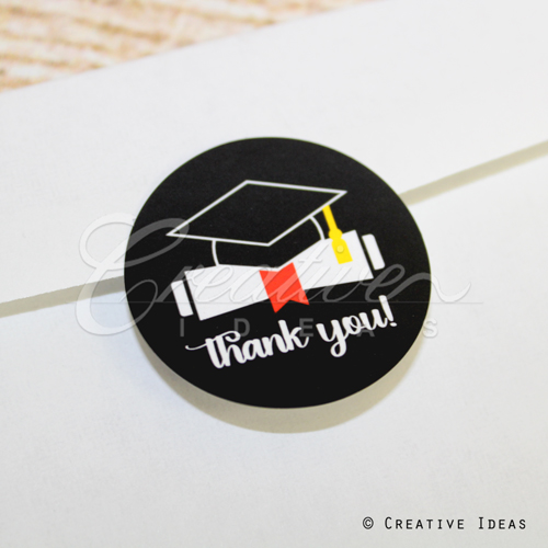 1 1/2" Thank You! Grad Stickers-12 Pcs (Black)