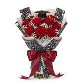 22" X 22" Grad Flag Floral Wrap-20 Pcs (Black/Gold)