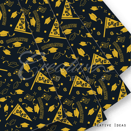 22" X 22" Grad Mixed Caps Floral Wrap-20 Pcs (Black/Gold)