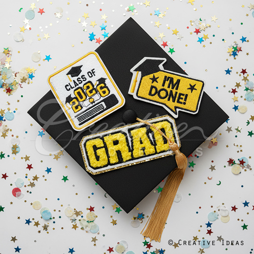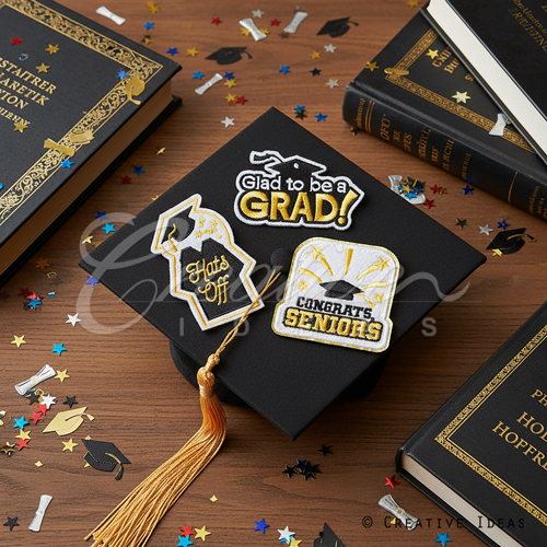 3 Pcs Diploma, Hat, Books Embroidery Patches-Set (Assorted)
