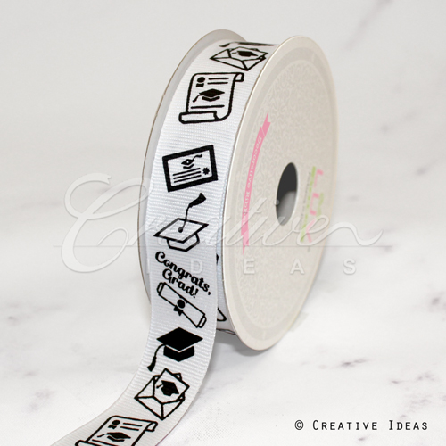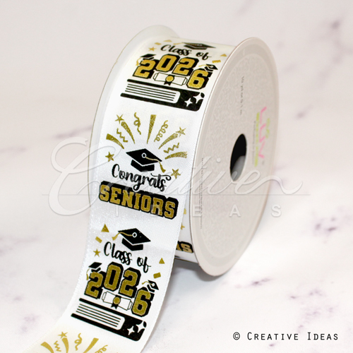 1 1/2" Satin Congrats Senior Party Ribbon-10 Yds (White)