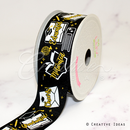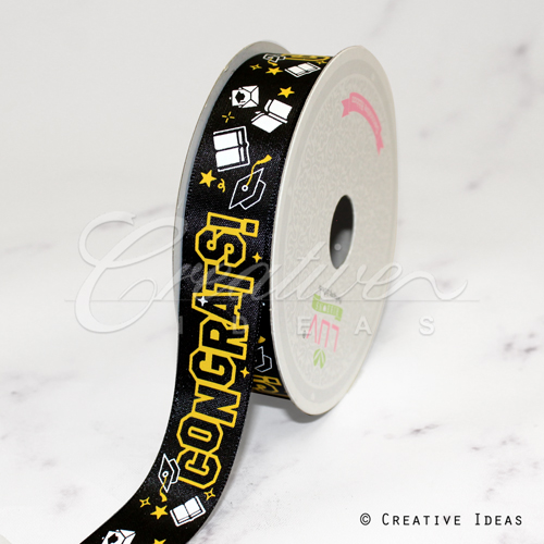 7/8" Satin Congrats! Ribbon-10 Yds (Black)
